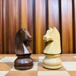 Embrace the beauty of traditional craftsmanship with this 3.75″ German Knight Luxury Staunton . Each chess piece is meticulously carved from premium-quality Sheesham (Golden Rosewood) and Boxwood, showcasing the natural richness and warmth of the wood grains. The elegant combination of light and dark tones creates a visually stunning contrast that enhances any chessboard or décor.